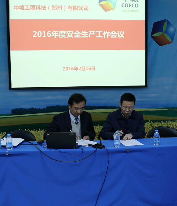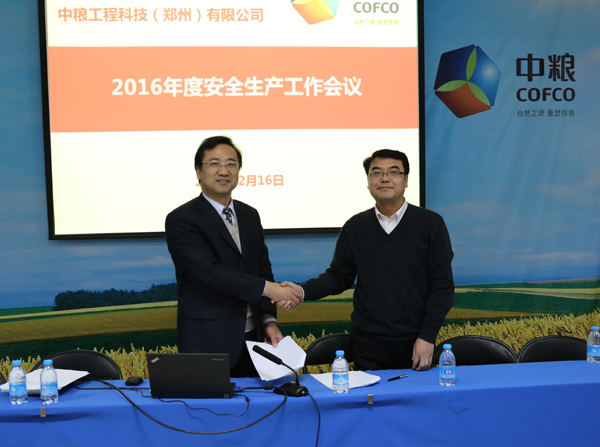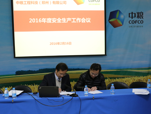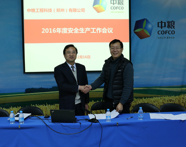 2月16日下午,公司在學(xué)術(shù)報告廳召開2016年安全生產(chǎn)工作會,公司領(lǐng)導(dǎo)班子、副總工、部門負責人以及安全管理部30余人參加會議??偨?jīng)理陳華定主持會議。    陳華定同志首先傳達中糧集團2016年質(zhì)量安全工作會議精神及集團領(lǐng)導(dǎo)對質(zhì)量安全工作的重要指示。然后,對2015年度公司安全生產(chǎn)情況進行總結(jié)回顧,肯定了2015年度安全生產(chǎn)管理方面所取得的成績。同時,要求各級黨員和經(jīng)理人認真履行好安全職責。安全管理部圍繞“建系統(tǒng)、訂制度、重監(jiān)督、抓專項、促創(chuàng)新”的工作思路,深入開展安全生產(chǎn)各項工作,為公司業(yè)務(wù)開展保駕護航。    最后,陳華定與公司其他領(lǐng)導(dǎo)班子成員簽訂了2016年度安全生產(chǎn)目標責任書,并要求各部門和個人按照“縱向到底,橫向到邊”責任制體系,層層簽訂安全生產(chǎn)目標責任書,嚴格落實安全生產(chǎn)目標責任。