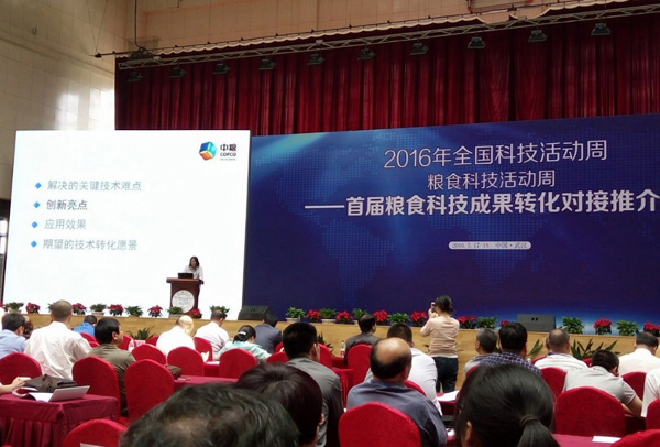 我公司于5月17-18日參加了“2016年糧食科技活動周——首屆糧食科技成果轉化對接推介活動”,在大會上發布了集裝箱散糧裝卸成套技術裝備,推介了公司近年來取得多項科技成果,同時展示了我公司在糧食流通領域設計、工程承包、烘干工程、糧食儲運設施設備檢測等方面的突出能力和業績,得到各級領導和客戶的認可。
