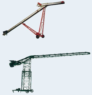 CDLY50型移動式堆糧機是一種專門用來作為大型房式倉進糧使用的移動式進糧、補倉設備。該機可一次進倉將糧食堆高到6米,采用擋糧板,克服了“埋輪”現象。當裝糧完成退出倉房后,該機可通過窗口進行補倉,以使儲糧均勻達到裝糧線。